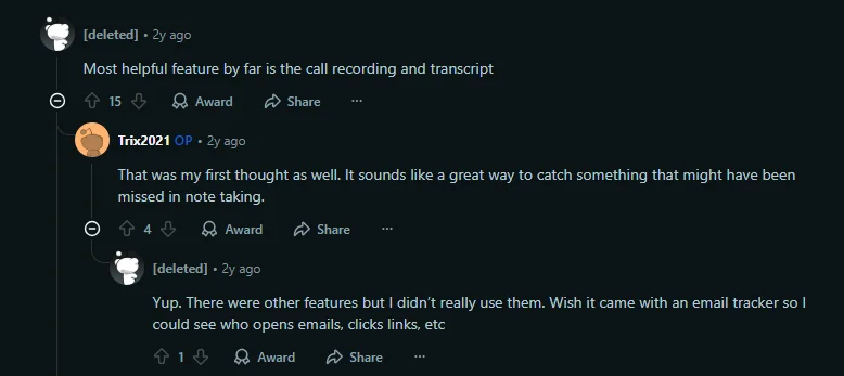 Some users say clients become quiet or hesitant once they hear the announcement, which can make it harder to build trust or have a natural conversation. Obviously, this is less than ideal for a small sales team or a dedicated account manager who’s trying to maintain trust.